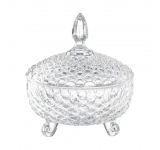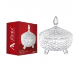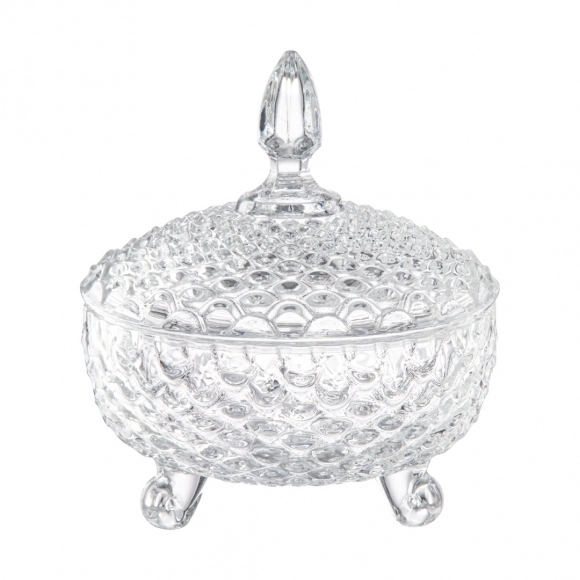 Sua tampa é adornada com uma luva decorativa, que confere um toque extra de sofisticação e refinamento à peça. A base do potiche é composta por um pé que garante estabilidade e realça seu visual elegante.
