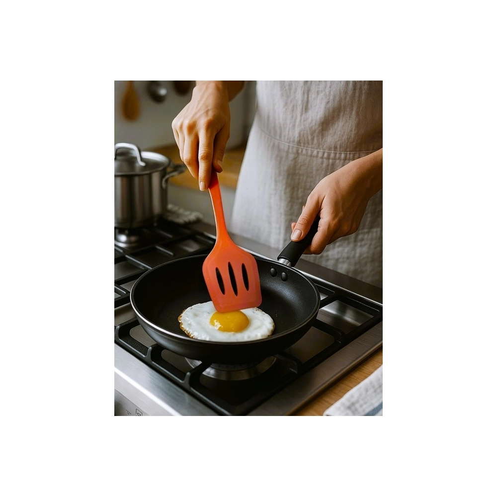 A espátula vazada de silicone vermelho é a escolha ideal para cozinheiros que valorizam utensílios versáteis, seguros e com um design que une beleza e eficiência!